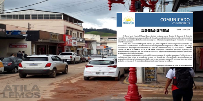 Com certa alta no número de pessoas infectadas pelo Coronavírus (Covid-19), mesmo elas já vacinadas, e o Governo de Minas reforçando o esquema vacinal devido às festas de fim de ano, a direção do Hospital Margarida suspendeu as visitas a partir desta segunda-feira (12/12), aos pacientes internados nas enfermarias do SUS e convênio, Maternidade, Pediatria […]