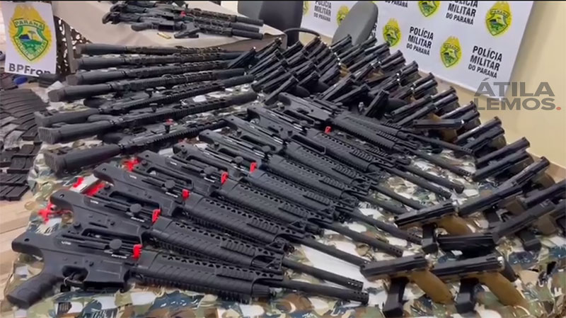 A Polícia Rodoviária Estadual (PRE) apreendeu 161 armas entre fuzis, pistolas, espingardas, carregadores e munições em um fundo falso em dois caminhões durante abordagem na PR-323 na madrugada desta quinta-feira (19) em Iporã, no noroeste do Paraná. Dois motoristas foram presos em flagrante.