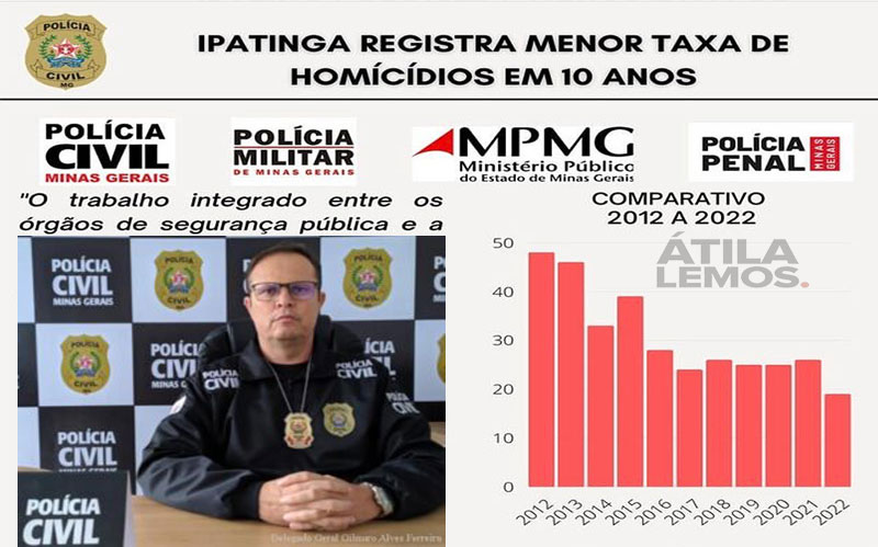 O 12º Departamento de Polícia Civil de Ipatinga realizou, no início de 2023, um balanço de ações de segurança pública ao longo de 2022. De acordo com o Delegado Geral de Polícia, Gilmaro Alves Ferreira, entre os índices que mais chamaram a atenção, está o índice de homicídios consumados em Ipatinga. De acordo com os […]