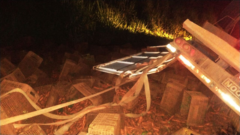 De acordo com informações o tombamento de uma carreta, transportando uma carga de cenoura, que teve parte saqueada.