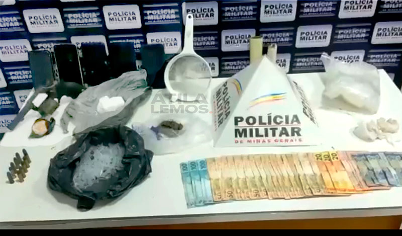 Ainda durante as diligências foi encontrada uma mochila, e dentro dela estava um revólver calibre 38 com numeração raspada, 11 munições intactas de mesmo calibre e sacolas contendo cocaína, crack e maconha, bem como materiais para embalagem é mais dinheiro.