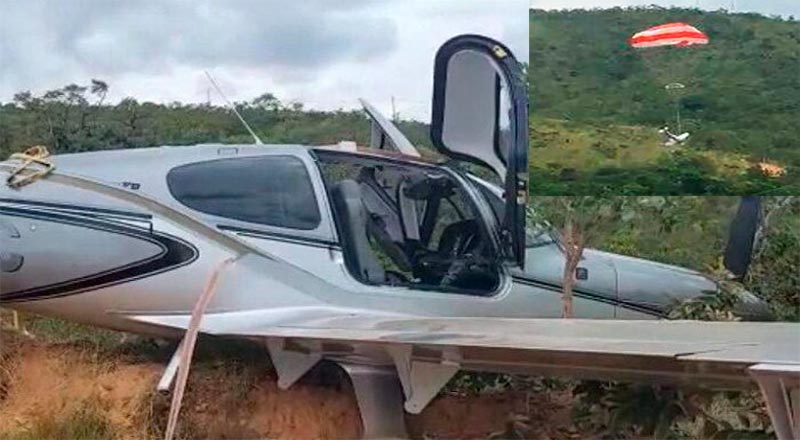 Queda de avião é filmada em Sabará/MG, paraquedas evita tragédia; vídeo