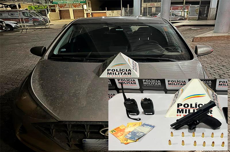 Polícia prende dupla, arma, rádio e carro na região de Catas Altas; vídeo