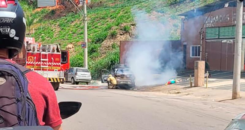 Carro pega fogo na Av. Cristina Gazire; vídeo