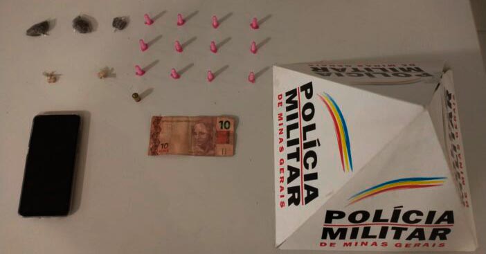 12 pinos de cocaína; 03 porções de maconha; 02 pedras de crack; 01 munição calibre .380; 01 aparelho celular.