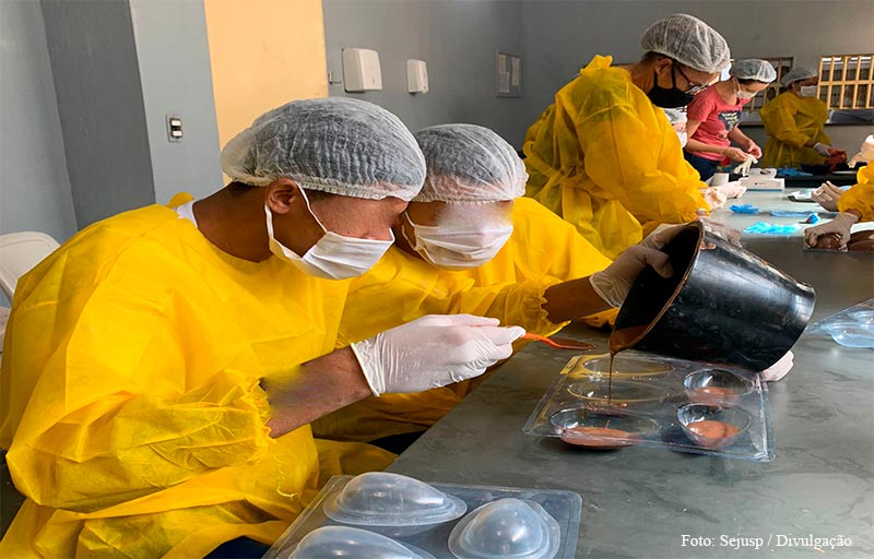 Jovens em cumprimento de medida socioeducativa produzem ovos de Páscoa para pessoas em risco social.
