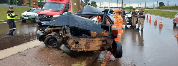 Morre motorista de carro que dobrou ao meio ao bater em poste