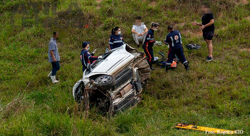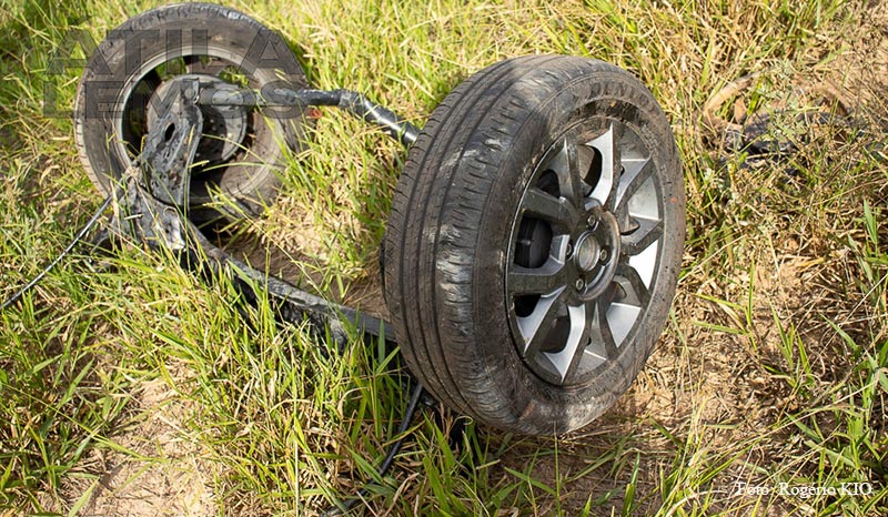 O Veículo Volkswagen UP de cor branca placa de Limeira (SP), ficou completamente destruído, com o impacto o motor e o eixo traseiro foram arrancados e ficaram espalhados pelo matagal.
