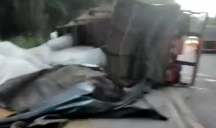 O trânsito, que está parcialmente interditado, flui no sistema de pare e siga. O acidente aconteceu na altura do km 416, em Capoeirana.