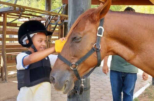 A Equoterapia é um método terapêutico e educacional que utiliza o cavalo como promotor do desenvolvimento humano. Por meio do contato com o animal, os alunos são estimulados em todas as suas habilidades, melhorando a atenção, o raciocínio, a memória, a socialização, a fala e a escrita. Todos esses benefícios trazidos pelo projeto contam ainda com um professor especial, o cavalo Futuro, o qual torna a aprendizagem prazerosa e uma experiência única para a criança.