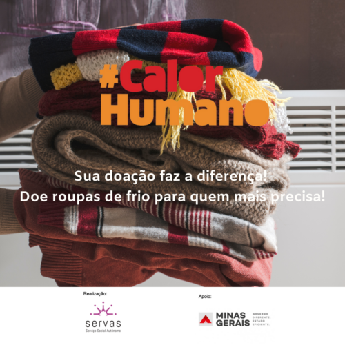 O Serviço Social Autônomo (Servas) lançou, nesta segunda-feira (15/5), a edição 2023 da campanha calor humano, que tem como objetivo arrecadar roupas e outros itens de inverno que serão doados a instituições socioassistenciais que atendem idosos, pessoas em situação de rua, crianças e adolescentes em vulnerabilidade social. Os mineiros poderão entregar as doações em dez diferentes unidades do supermercado Super Nosso e também no Servas, em horário comercial.