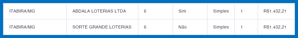 Em Itabira, duas apostas foram premiadas com a quadra e irão receber R$ 1.432,21 cada.