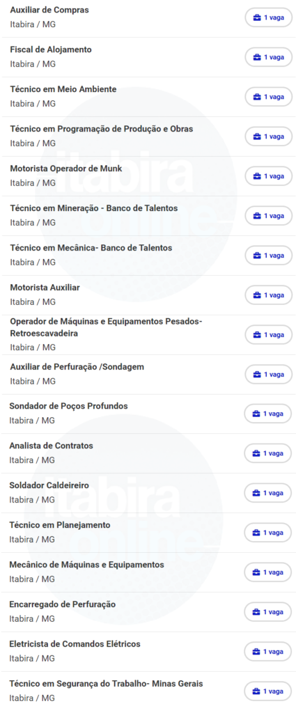 VAGAS de emprego na VALE em Itabira e São Gonçalo