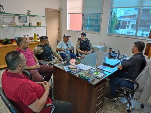 Na tarde dessa terça-feira, (30/05), o Tenente Coronel Edvaldo Fernandes e o Tenente Daniel Andrade da Polícia Militar estiveram reunidos no Legislativo com a Mesa Diretora para tratarem sobre o projeto. Participaram do encontro o presidente da Casa, Fernando Linhares, o vice-presidente, Gustavo Maciel (Podemos), 1º secretário Pastor Lieberth (União) e 2º secretário, Revetrie Teixeira (MDB). Na oportunidade, o tenente Coronel entregou cópia do projeto que institui o Programa Vigilância Colaborativa nas escolas. Para que isto ocorra, é necessária a aquisição e a instalação dos equipamentos.