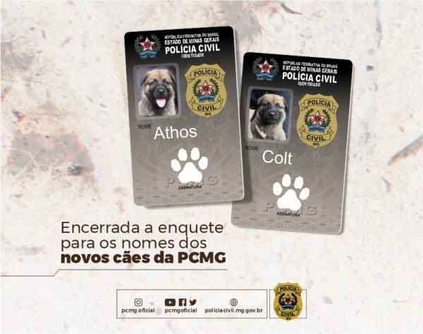 Athos e Colt foram os nomes escolhidos para os novos cães da PCMG Confira o resultado da enquete para a escolha dos nomes dos novos cães da Coordenação de Operações com Cães (COC) da Polícia Civil de Minas Gerais (PCMG). E os vencedores foram Athos e Colt! Agora, eles estão prontos para iniciar os treinamentos […]