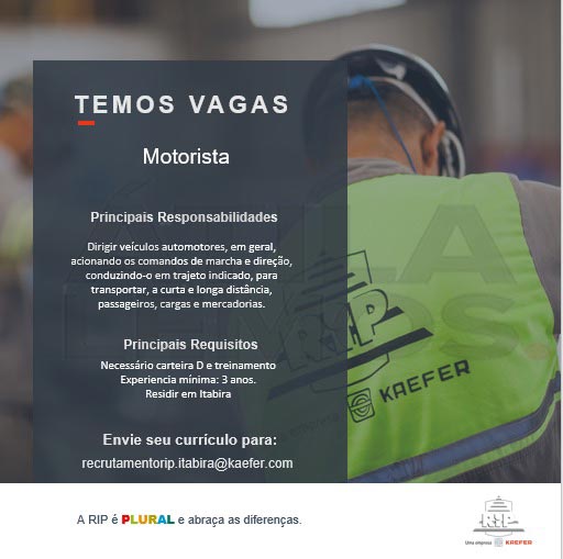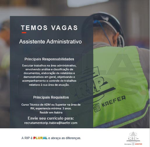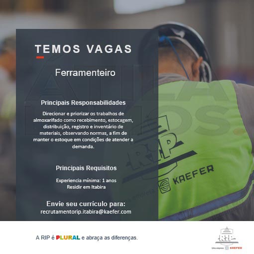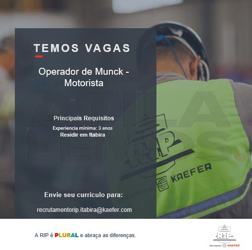 Empresa RIP oferta VAGAS em Itabira