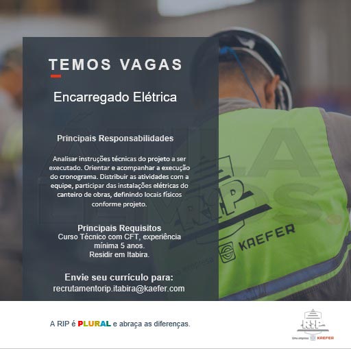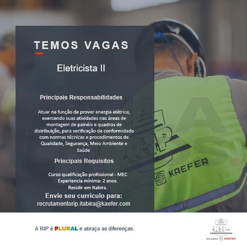 da vaga para o e-mail ou whatsapp descrito em cada vaga. Email: recrutamentorip.itabira@kaefer.com