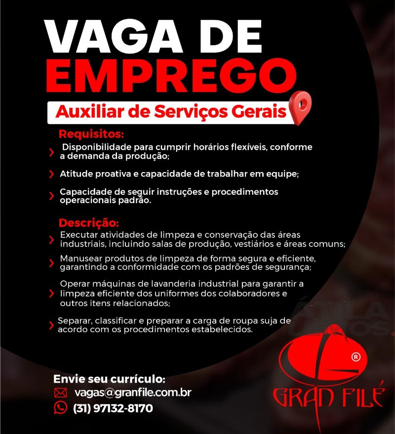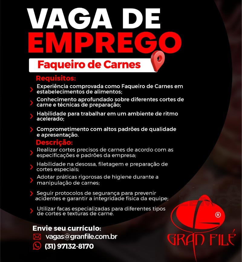 Confira as VAGAS na Gran Filé! 04/12