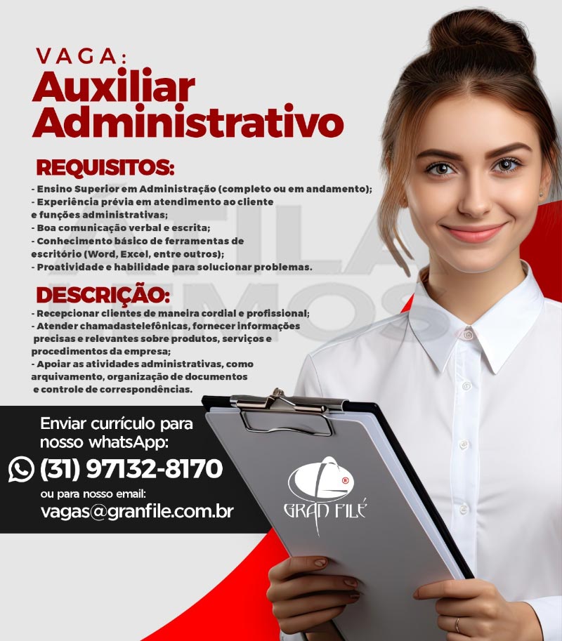 Os interessados que tenham perfil dessa vaga, deverão enviar o currículo à empresa Gran Filé no e-mail: vagas@granfile.com.br com o nome da vaga no assunto.