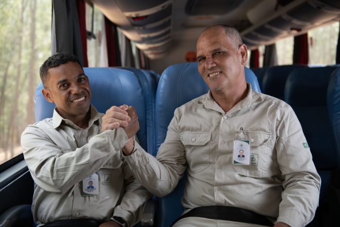 Os trabalhadores florestais celebraram a chegada do novo transporte, que já opera em todas as frentes de trabalho desde o dia 26 de outubro. “O calor era intenso na outra condução. Esse tem o ar-condicionado, que ajuda bastante. Agora é pensar na minha tranquilidade. Dormir e descansar até chegar no trabalho”, disse Daniel Fortunato, trabalhador florestal.