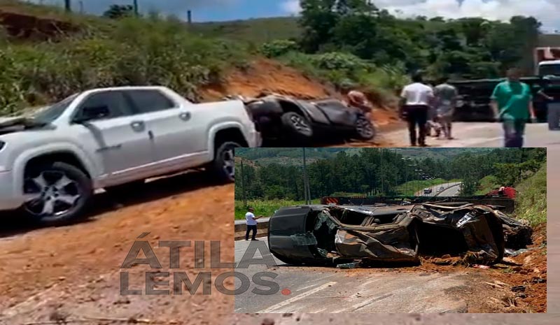 Carros destruídos em colisão na BR381 em Nova Era; vídeo