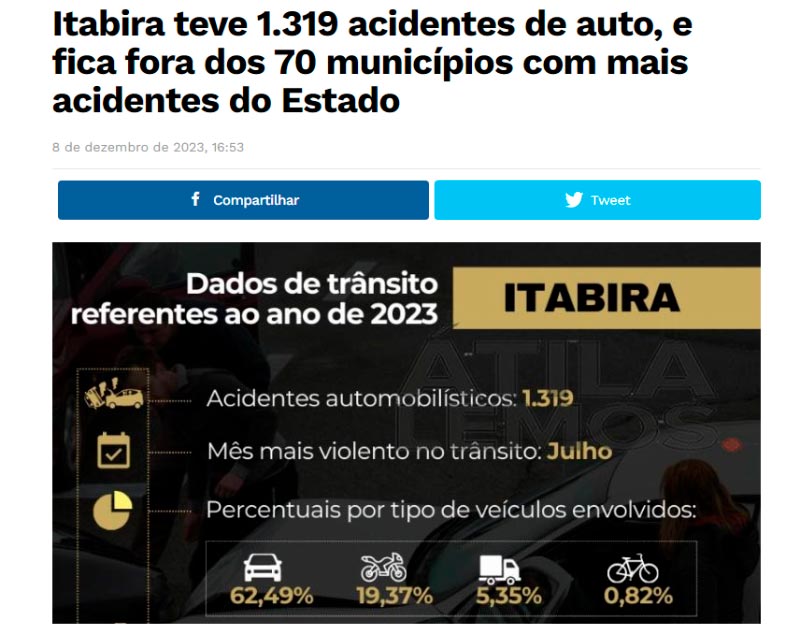 O acidente aconteceu na Avenida Das Rosas, em Itabira, na pista que segue para o centro da cidade, por volta das 10h45 desta segunda-feira, 11/12/2023.