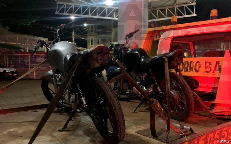 Foram ainda apreendidas 02 motocicletas e efetuadas as prisões de seus condutores por adulteração das características dos veículos, sendo um em Itabira e o outro em Barão de Cocais.
