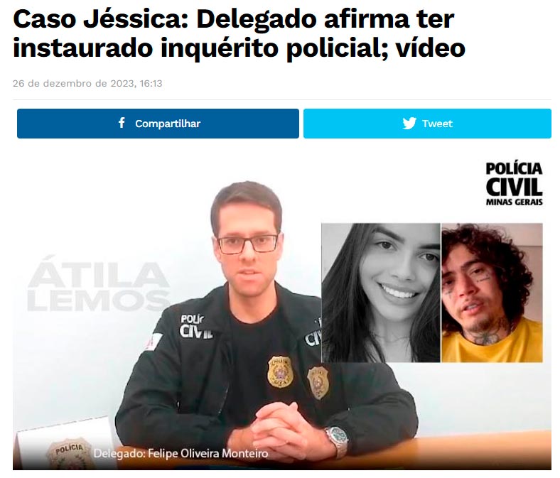 O proprietário do perfil “Choquei” prestou depoimento, hoje, à Polícia Civil de Minas Gerais no inquérito que apura a morte de Jéssica Vitória Canedo. A jovem morreu por suicídio na última semana, no dia 23 de dezembro, após ser alvo de informações falsas sobre um suposto relacionamento com o humorista Whidersson Nunes.