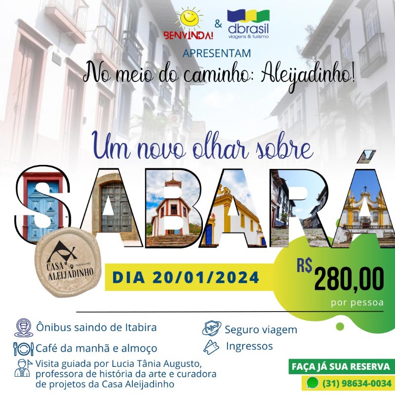 A dbrasil viagens e turismo de Itabira, a Casa de Aleijadinho e a Bem-Vinda, Turismo pela paz, conduzirão você e sua família em uma jornada inédita pela cidade de Sabará.