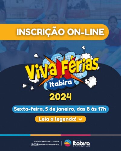 As inscrições on-line para o Viva Férias serão apenas amanhã (sexta-feira), dia 05 de janeiro, das 8h às 17h.