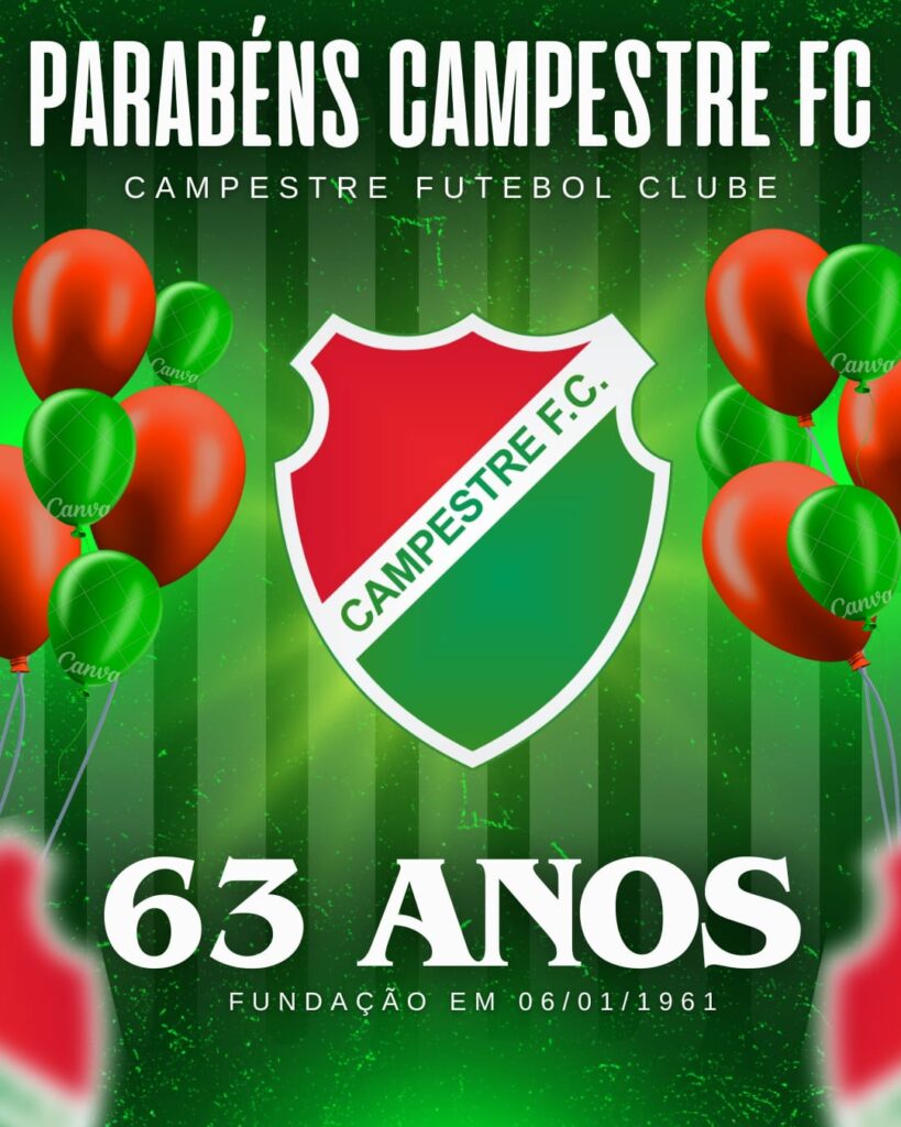O CAMPESTRE FUTEBOL CLUBE COMPLETA NA DATA DE HOJE 06/01/2024 63 ANOS FUNDADO EM 06/01/1961 PARABÉNS AO VERDÃO DA COLINA