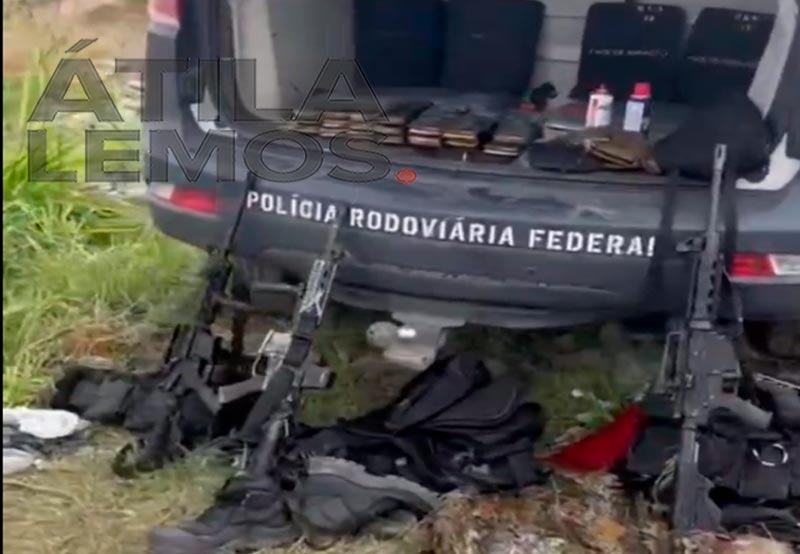 A Polícia Rodoviária Federal (PRF) apreendeu três fuzis, muita munição, carregadores e coletes balísticos durante abordagem e perseguição.
