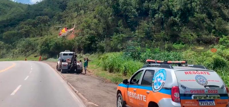 O local seria na região de Caeté/MG, próximo ao trecho denominado de Corte de Pedras, no local seria um acidente de queda de veículo em ribanceira que provocou ferimentos em dois adultos e uma criança.