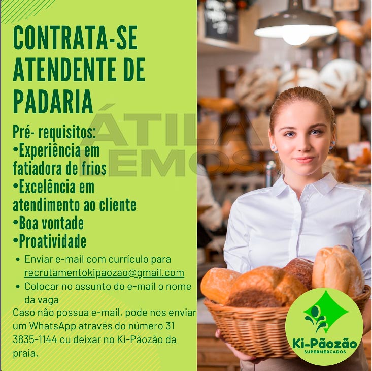 As pessoas interessadas na divulgação, deverão encaminhar o currículo para e-mail descrito na vaga. E-mail: recrutamentokipaozao@gmail.com