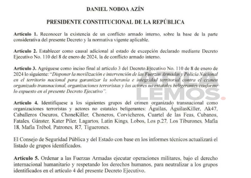 Caos total no Equador após o Presidente Daniel Noboa declarar os cartéis de drogas como organizações terroristas.