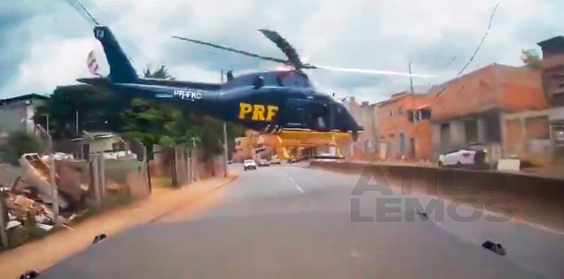 Uma câmera de segurança instalada em um veículo flagrou o momento em que o helicóptero da PRF caiu na Avenida Tereza Cristina, em Belo Horizonte nesta segunda-feira, 8/01/2024.