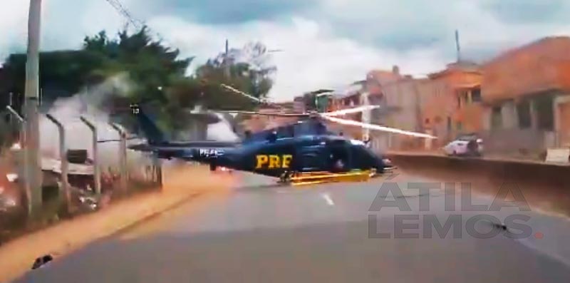 Na imagem pode-se ver o carro seguindo normalmente pela via e quando passou a aeronave cai atingindo a pista de rolamento, um carro que vinha logo atrás o motorista foi rapido e freiou para não atingir o helicóptero.