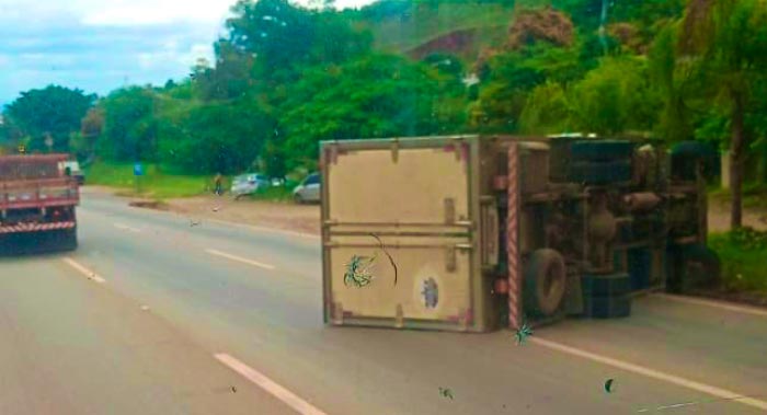 O tombamento do caminhão aconteceu nesta quarta-feira (10/01), próximo ao caldo de cana. As causas são desconhecidas.
