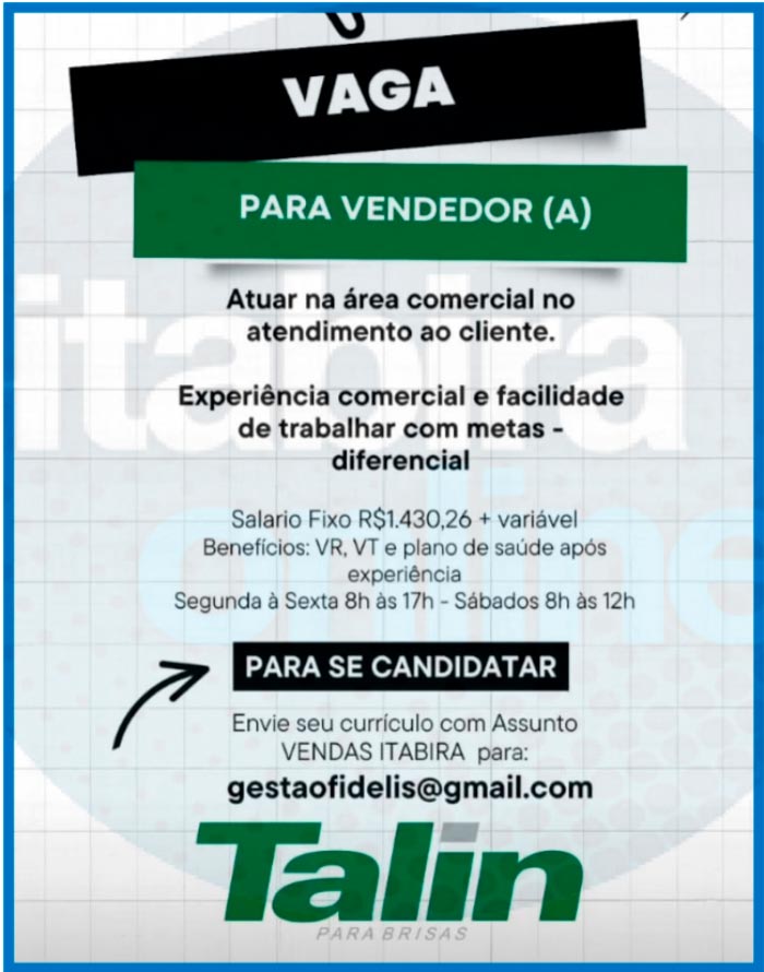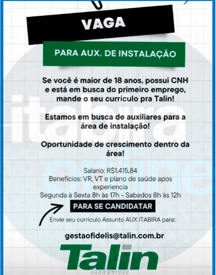 VAGAS na empresa Talin Vidros em Itabira