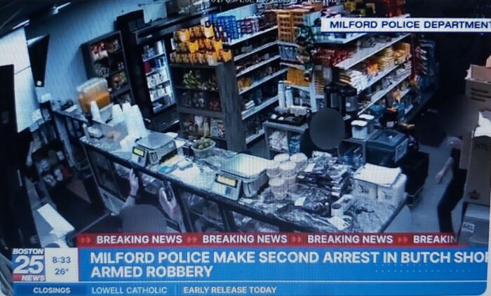 Dois brasileiros foram presos em Milford, Massachusetts, EUA, suspeitos de assaltar uma mercearia e levar cerca de US$ 16 mil.