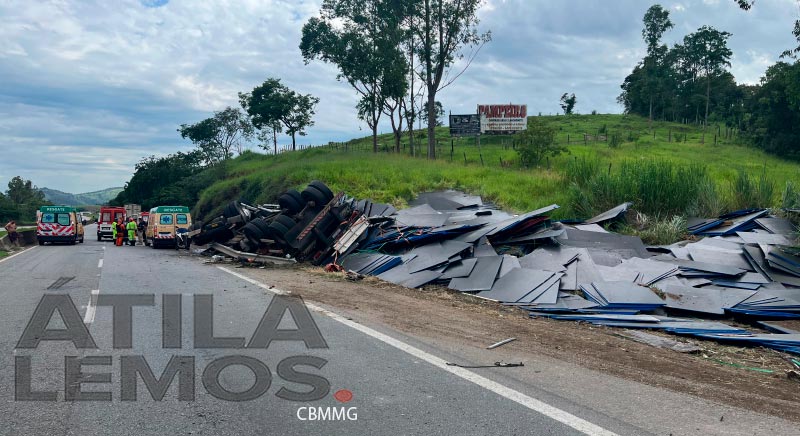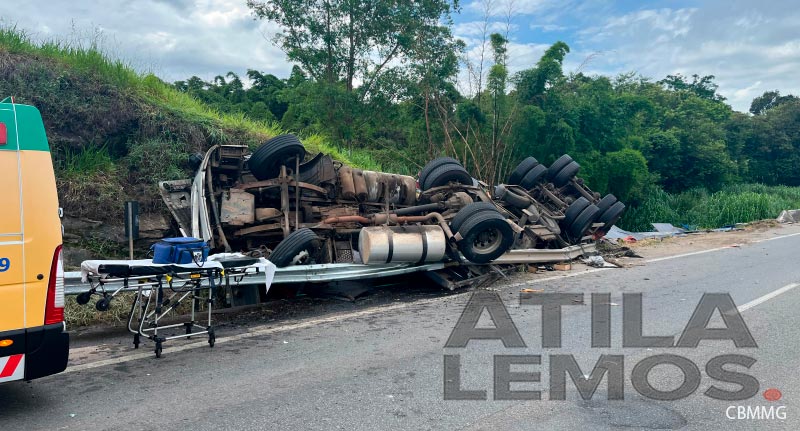 O condutor da carreta foi encaminhado em estado grave no helicóptero do Corpo de Bombeiros para o Hospital João XXIII, em Belo Horizonte.