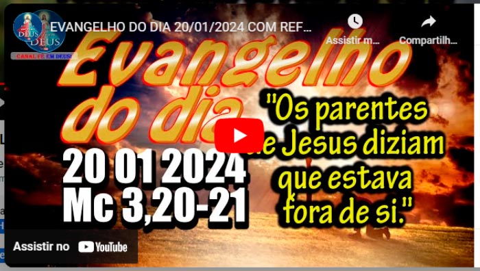 EVANGELHO DO DIA 20/01/2024 COM REFLEXÃO. Evangelho (Mc 3,20-21) “Os parentes de Jesus diziam que estava fora de si.” Naquele tempo, 20 Jesus voltou para casa com os discípulos. E de novo se reuniu tanta gente que eles nem sequer podiam comer. 21 Quando souberam disso, os parentes de Jesus saíram para agarrá-lo, porque diziam […]