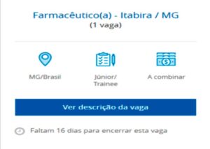 Confira a vaga disponível para Itabira clique abaixo: