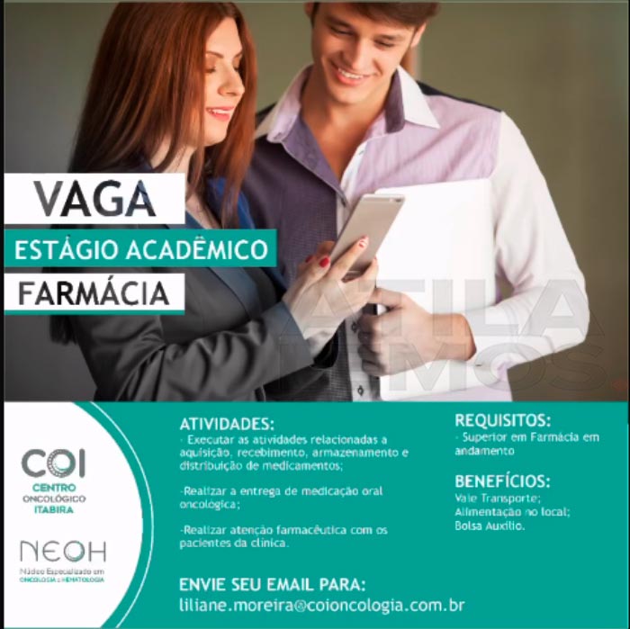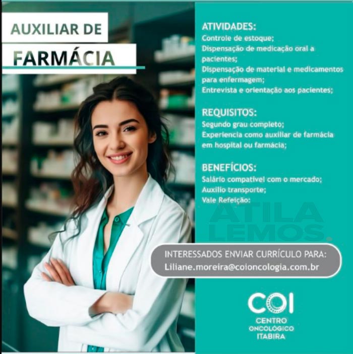 VAGA no COI (Centro Oncológico Itabira) para Auxiliar de Farmácia e estagiário