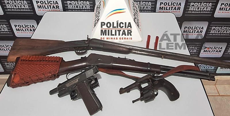 A Polícia Militar apreendeu várias armas de fogo nesta quarta-feira (24/01), após serem acionados para comparecer ao córrego São Matheus, zona rural de Ipanema.
