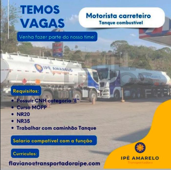 Leia com bastante atenção! As pessoas interessadas na divulgação, deverão encaminhar enviar currículo com foto para o e-mail flaviano@transportadoraipe.com ou whatsapp descrito em cada vaga.
