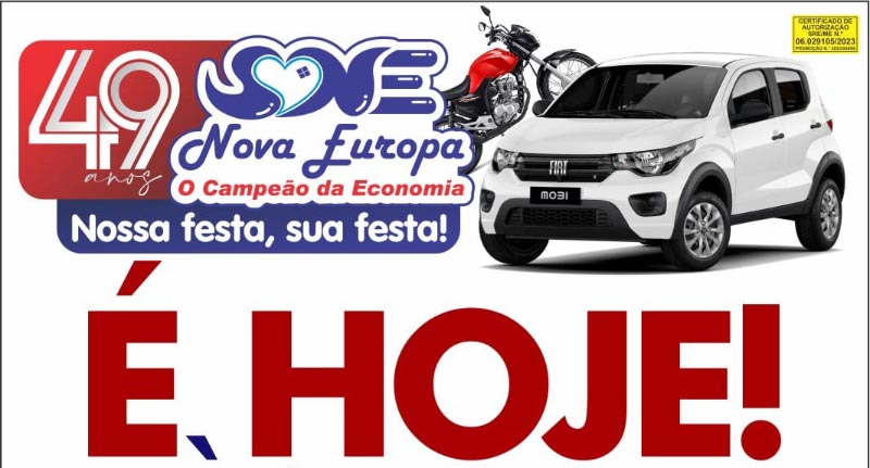 49 anos e Sorteio de um carro e uma moto CG pelo Nova Europa