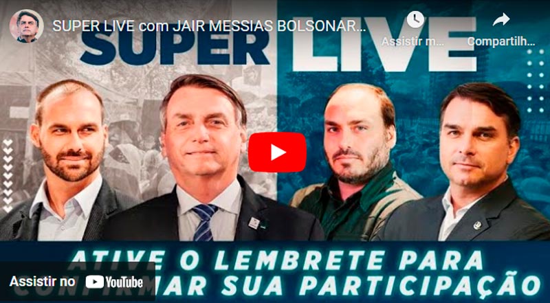 Bolsonaro e filhos fazem LIVE para mais de 410 mil pessoas simultaneamente