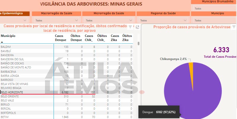 – A capital Belo Horizonte tem 6.182 casos de DENGUE, e 151 casos de chikungunya, total 6.333