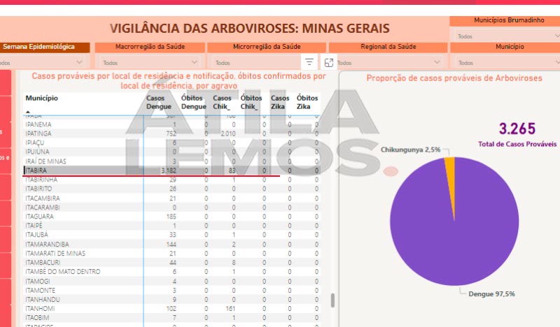 Das cidades do interior de Minas Gerais, Itabira ainda vem se destacando em 1° lugar com o maior número (3.182) de pessoas infectadas por DENGUE; mais da metade dos infectados de Belo Horizonte, capital que possui 2,7milhões de habitantes.